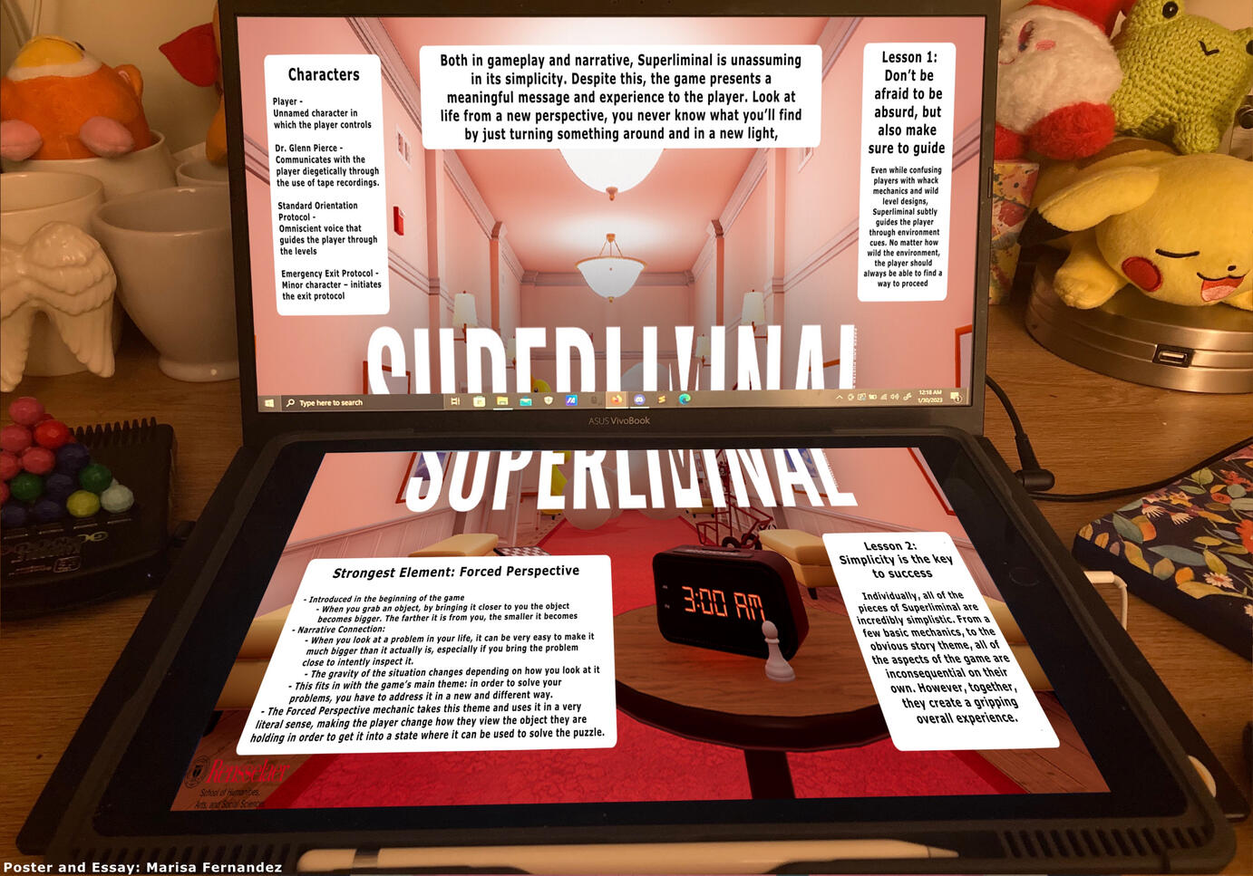 Not only an artist and designer, Marisa Fernandez also has a keen skill in detailed writing for analysis and research. From writing an award-winning Game Narrative Review, to intricate analyses of the effect of Minecraft on social communities and how emotion is presented in various form of fiction, to a completely original piece of creative writing, Mari has written a large variety of work, both casual and purely academic.Take a look at the collection of writing in the public Google Drive folder!